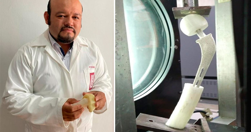 El implante consta de tres partes diseñadas a partir de una tomografía computarizada: la cabeza femoral, el cuello de la prótesis y el soporte copa acetabular
