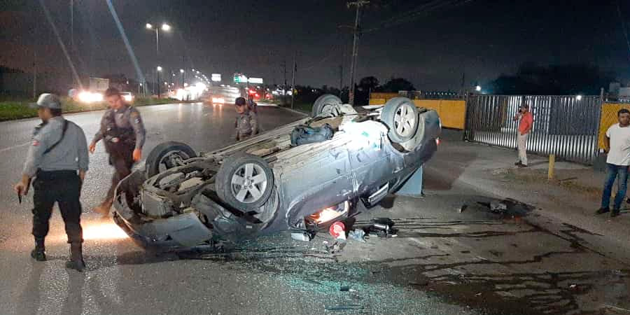 Con las llantas hacia arriba terminó un vehículo particular que era manejado a exceso de velocidad, por la avenida de la industria, la madrugada del jueves.