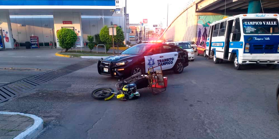 Dolorosas lesiones sufrió un motociclista al estrellarse contra un vehículo del transporte público, en peligrosa intersección que en otras ocasiones ha sido escenario de lamentables accidentes.