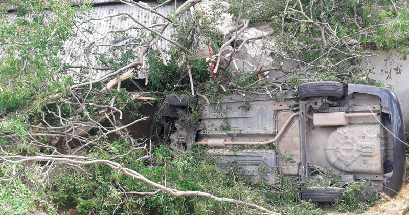 Vehículo cae a barranco y daña vivienda