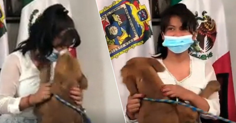 Visiblemente emocionado el perro Spay, rescatado del socavón de Puebla, corrió directo con su dueña Fátima, a quien llenó de lengüetazos