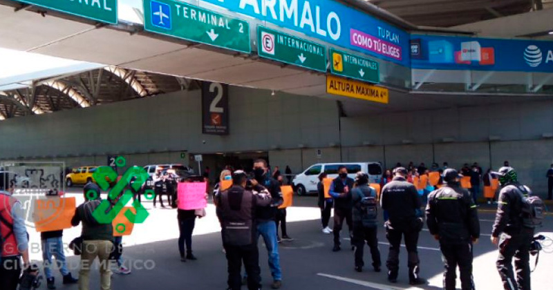 Un contingente de padres de niños con cáncer realizan un bloqueo en la Termina 1 del Aeropuerto Internacional de la CDMX (AICM) ante la falta de medicamentos.
