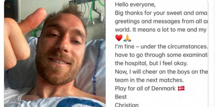 Christian Eriksen acompañó su mensaje de una foto en la que se le observa sonriente y con el pulgar levantado.
