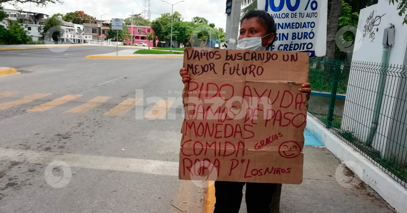 Cristina, su esposo y sus dos hijos piden apoyo económico en Altamira para llegar a la frontera