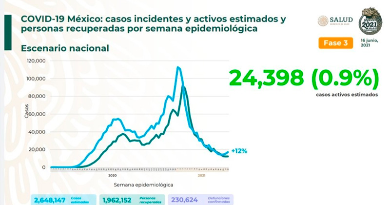 Hay 24 mil 398 casos activos estimados en todo el país.
