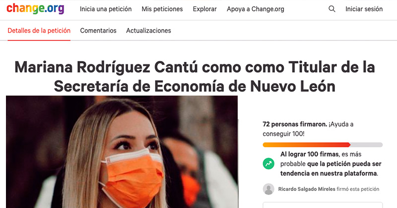 Piden a Mariana Rodríguez como Secretaria de Economía de NL