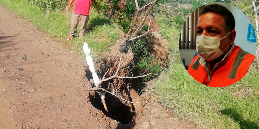 La extracción de material en el acceso al ejido Mata del Abra es lo que ocasionó los deslaves que se registran en el acceso principal y que se han ido acentuando.