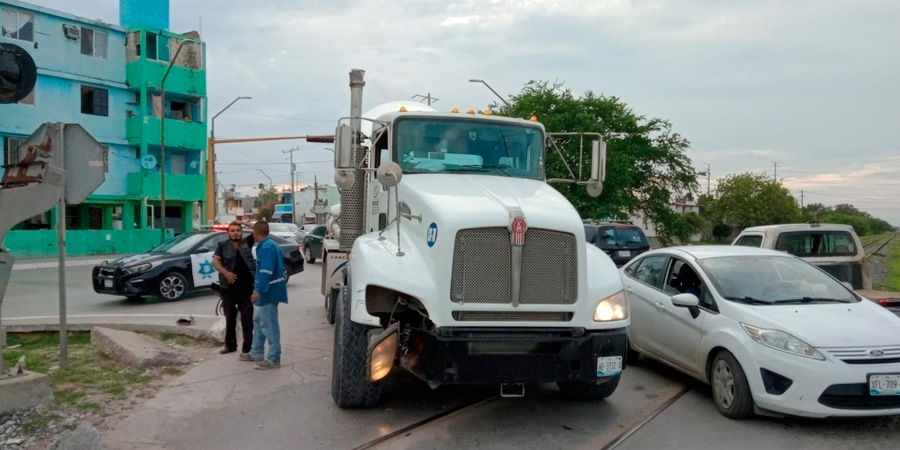 Abollado de la parte trasera acabó un automóvil particular al ser impactado por un camión revolvedora de concreto, en conflictivo cruce de la zona norte de Tampico.