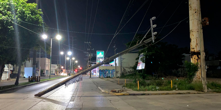 Un poste de la Comisión Federal de Electricidad se encuentra en pésimo estado y terminó por caerse, quedando a media calle.