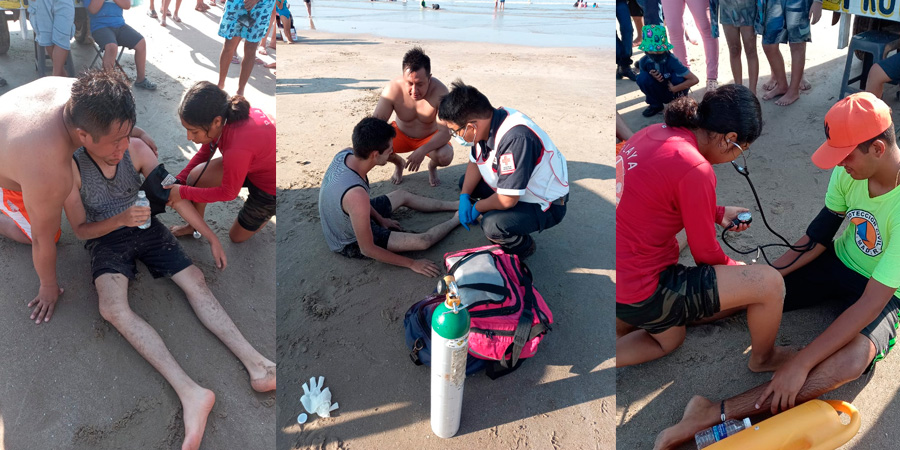 Visitantes provenientes de Guadalajara no respetaron las indicaciones por parte de guardavidas, quienes señalaron que se metieron a una parte profunda y peligrosa del mar y por poco se ahogan.