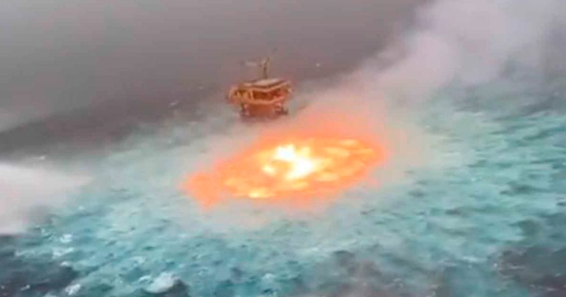 Barcos cisterna laboran para evitar que el fuego se salga de control, a 400 kilómetros de la plataforma Ku-Charly perteneciente al complejo marino Ku Maloob Zaap