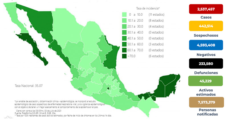 Actualmente hay 45 mil 229 casos activos con síntomas que pueden llegar a transmitir la enfermedad