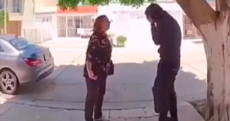 En dicho video se observa a una señora intentando abrir la puerta de su casa, cuando una motocicleta con dos individuos encapuchados se estaciona frente a ella. A pesar de sus esfuerzos por resguardarse, un hombre joven le pide que le dé absolutamente todo lo que trae sin tirar nada. Con los nervios a flor de piel, la mujer le pide que no le haga nada y comienza a sacar sus pertenencias con cuidado.