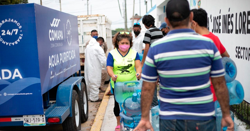 Vecinos de estas zonas acudieron con dos o tres garrafones para el llenado con agua purificada; lo anterior deja patente el compromiso social y la vocación de servicio del organismo, el cual busca ayudar a las familias en estos tiempos de contingencia sanitaria.