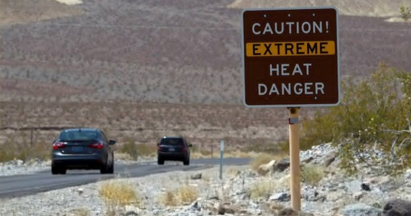 ESTADOS UNIDOS.- La ola de calor que se suscitó este viernes al oeste de Estados Unidos provocó temperaturas que se dice llegaron hasta los 130 grados Fahrenheit (54.4 grados Celsius) en el Valle de la Muerte, California.