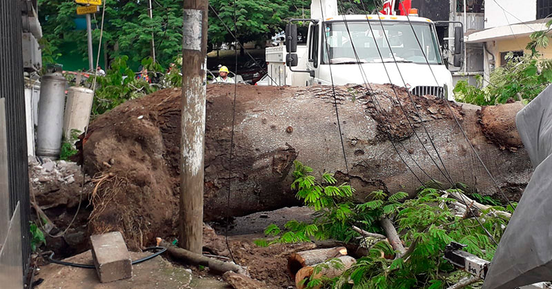 Múltiples daños ocasionó un árbol de grandes dimensiones que estaba ubicado sobre una banqueta, al desplomarse la madrugada del domingo, en la zona norte de Tampico.