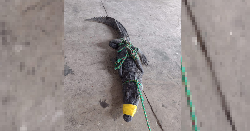 Tampico.- Un cocodrilo de metro y medio de largo fue capturado la tarde del viernes, cuando deambulaba por el bulevar Adolfo López Mateos, en Tampico.