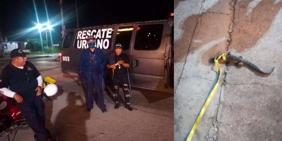 Los veladores atraparon al pequeño cocodrilo y lo entregaron a bomberos Altamira (Rescate Urbano) para que se hicieran cargo.