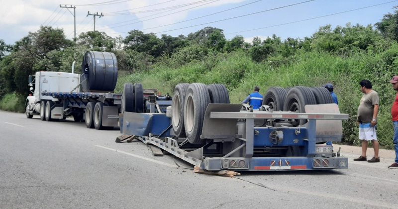 El exceso de velocidad originó el percance sobre la Avenida de la Industria; la unidad cargaba rollos de acero