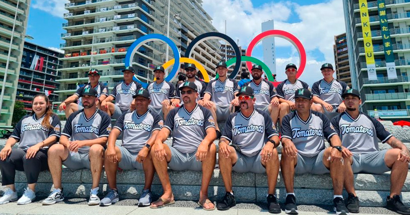 En redes sociales circuló una foto de la selección de beisbol de México con playeras de Tomateros de Culiacán en la Villa Olímpica de Tokio.