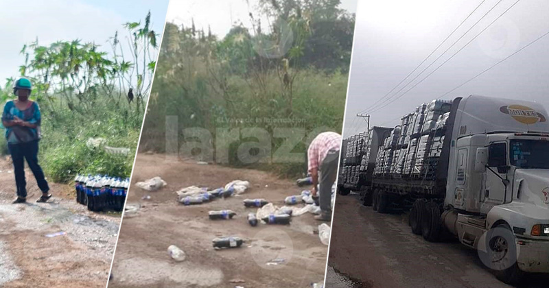 Cargan con cientos de botellas de dos litros de bebida de cola.