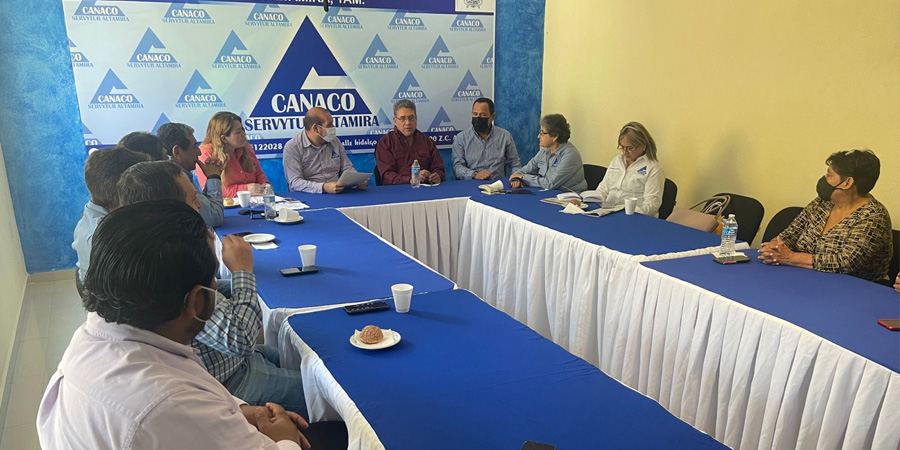 Buscando estrategias enfocadas a la reactivación de la economía local y atendiendo compromisos de campaña, el presidente municipal electo Armando Martínez Manríquez sostuvo una reunión con directivos y socios de la Cámara Nacional de Comercio, Servicios y Turismo de Altamira (CANACO-SERVYTUR).