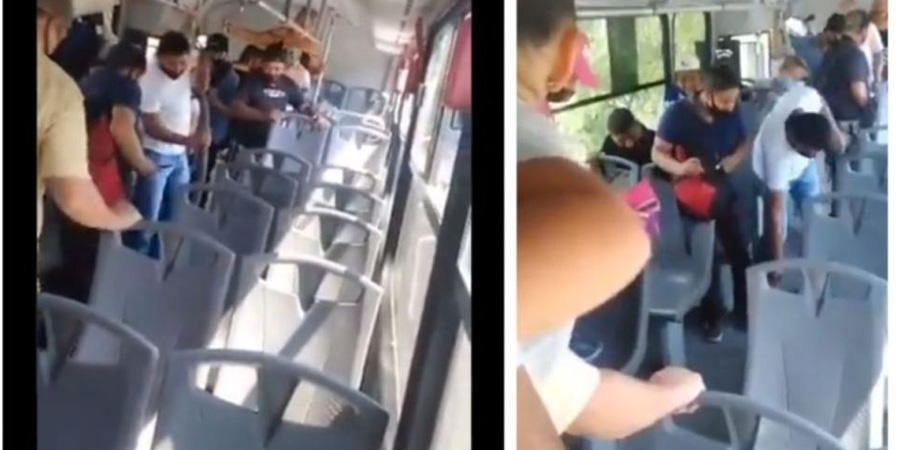 Los pasajeros y el conductor de un camión de transporte público detectaron una víbora entre los asientos y decidieron ahuyentarla para reanudar su viaje.