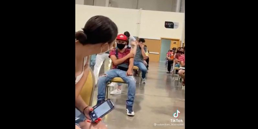 Los gritos del joven cuando la enfermera se le acerca hicieron que sus vecinos de vacunación sacaran los teléfonos celulares y comenzaran a grabarlo