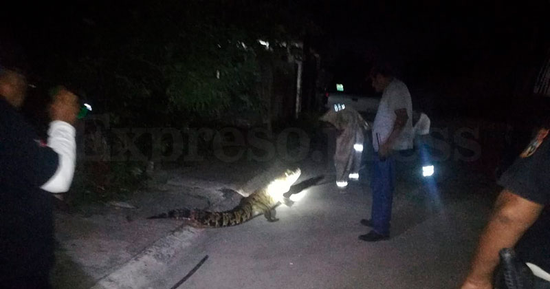 Fueron veladores quienes al hacer sus rondines de vigilancia durante la madrugada de este domingo, se percataron del enorme saurio