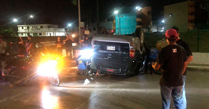 Al llegar a ese punto, el vehículo derrapó debido al pavimento mojado por lo que terminó volcándose para quedar con las llantas hacia arriba.