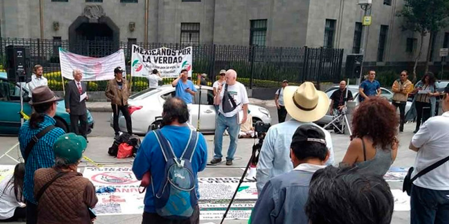 Un grupo de 50 personas que están en contra del uso de cubrebocas y de la vacuna contra el covid-19, se manifiestan frente a las oficinas de la Secretaría de Salud en Lieja y Paseo de la Reforma.