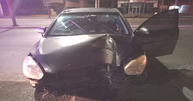 El auto era conducido a exceso de velocidad sobre la Avenida Hidalgo; terminó en el acceso a estacionamiento de una pizzería