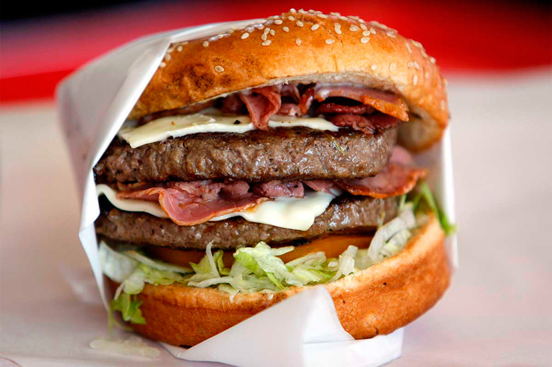 Mujer se disloca la mandíbula intentando comer una hamburguesa triple