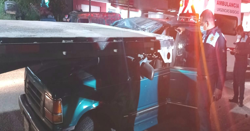 Automovilista se estrella con plataforma y sale ileso