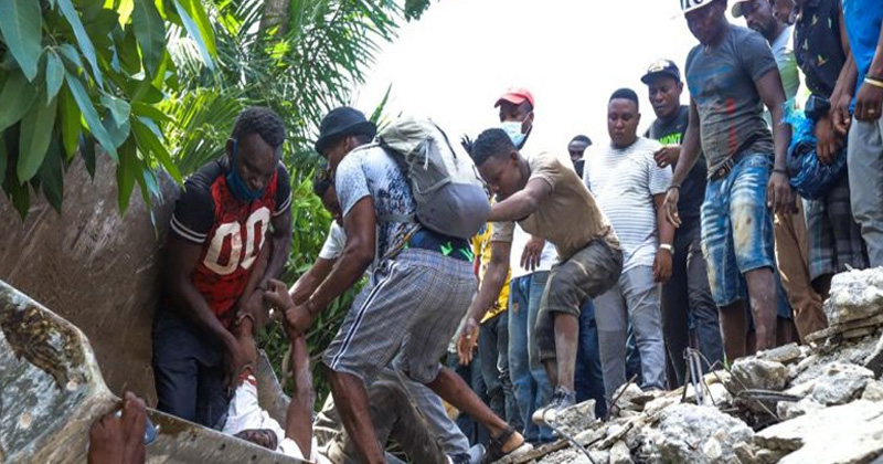 La gente en la nación isleña caribeña se apresuró a salir a las calles en busca de seguridad y para ayudar a rescatar a los atrapados entre los escombros de casas, hoteles y otras estructuras derrumbadas