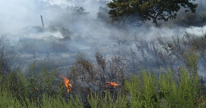 Al menos dos unidades del Cuartel de Bomberos fueron movilizadas, ante la posibilidad de que el fuego pudiera alcanzar el área habitacional del Fraccionamiento 17 de Enero