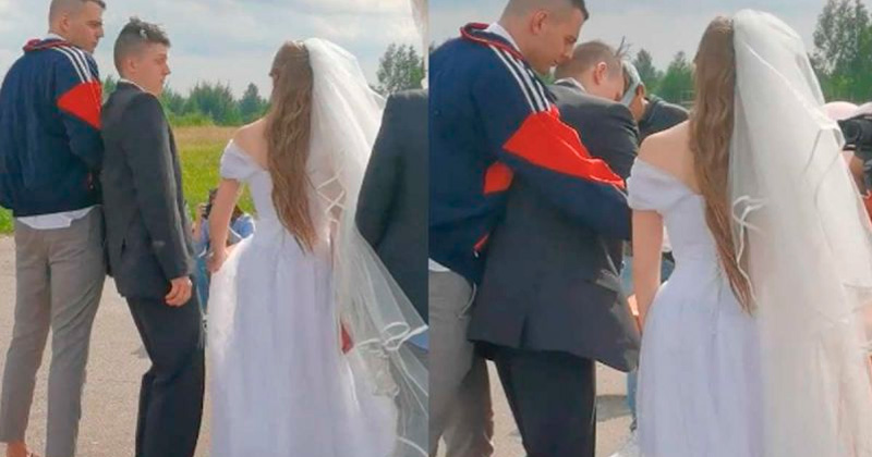 A través de redes sociales puede verse el momento en que un joven llega muy borracho a su boda, tanto que incluso es sostenido por otro invitado para que no se caiga