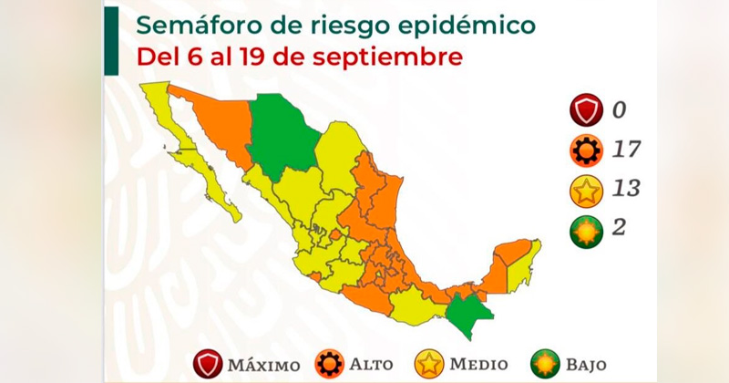 La Secretaría de Salud federal indicó los cambios que habrá para los próximos días en el semáforo epidémico de todos los estados; ninguno se encuentra en rojo