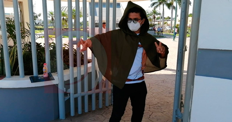 Un joven de la colonia Villahermosa acudió caracterizado de un personaje de anime a recibir la vacuna contra la Covid-19