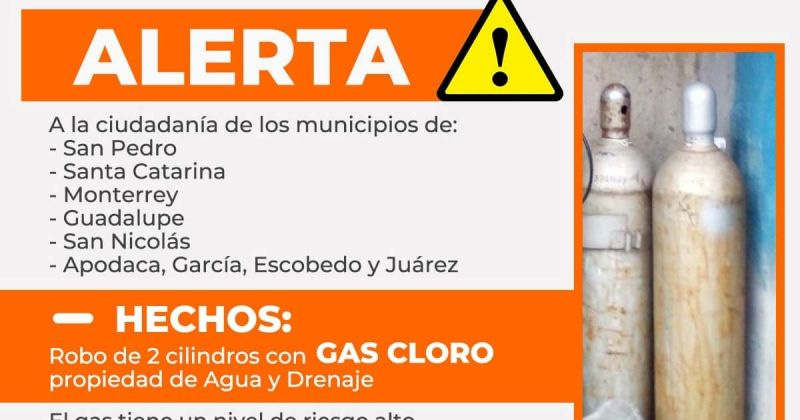 Alerta por robo de 2 cilindros con gas cloro en Nuevo León