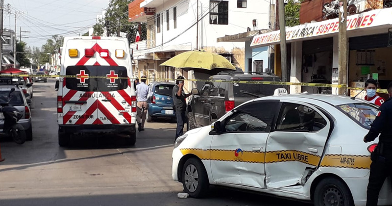 Tampico.- Una mujer que viajaba como pasajera en un taxi resultó lesionada, luego de que esa unidad fuera impactada por otro carro, en peligroso cruce de la calle José de Escandón en Tampico.