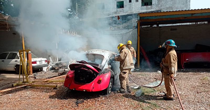 Las llamas arrasaron con el Volkswagen Sedán, en color rojo, conocido popularmente como Vocho