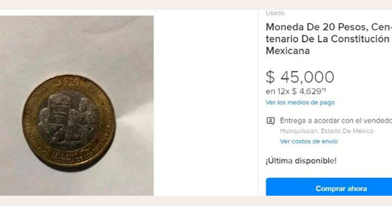 Moneda conmemorativa de 20 pesos se vende hasta en 45 mil