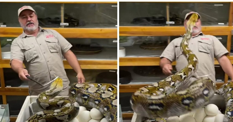 En el impresionante video se puede ver la actitud retadora de los reptiles que intenta proteger sus crías, mientras el hombre se hace poco a poco hacia atrás en señal de rendición