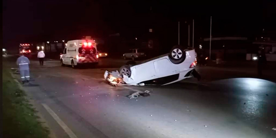 Auto vuelca en la avenida de la industria