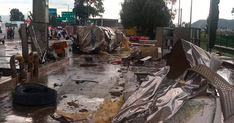 El conductor de la pipa perdió el control de la unidad y chocó contra la caseta dejando como saldo tres personas lesionadas