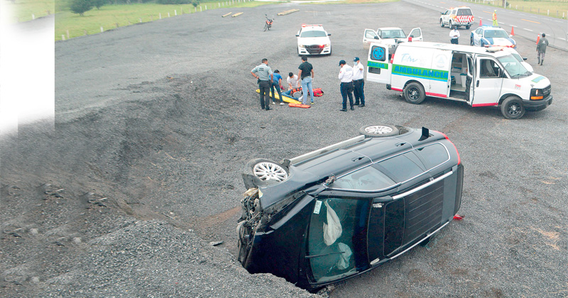 Joven conductor resulta lesionado al chocar contra un enorme montículo de arena y volcar su unidad en la carretera a Zaragoza