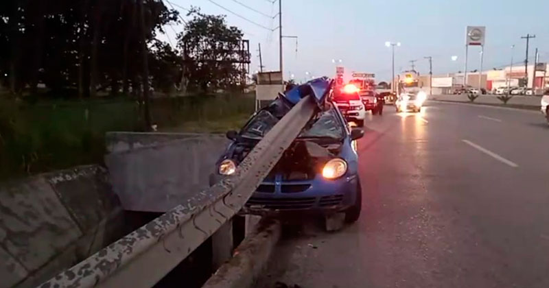 Choca contra valla en Avenida de la Industria y vive para contarlo