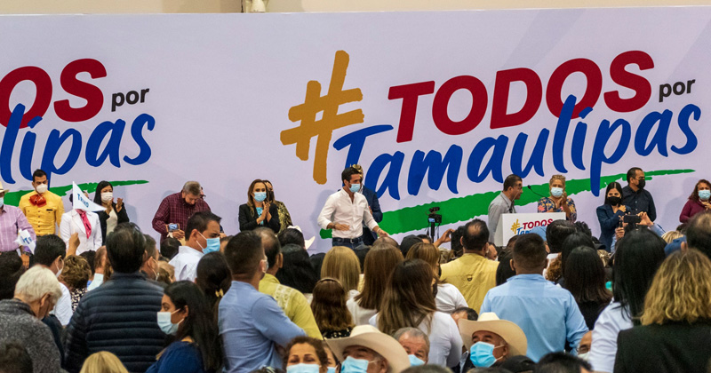 Eufórico como en sus tiempos de candidato tricolor, arengó a los tamaulipecos a unirse en favor del proyecto político del “Truco”.