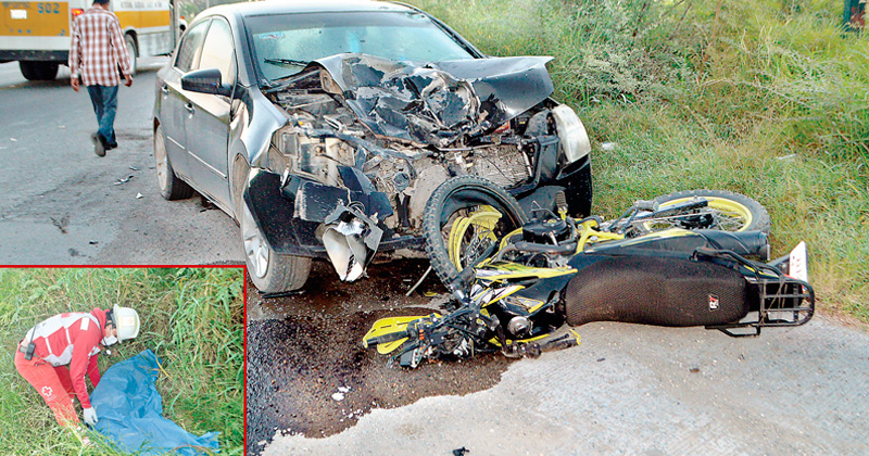 Guardia de seguridad comete el error de meterse en contra ruta al acceso de la Colonia La Gloria: embistió de frente a una motocicleta con dos personas